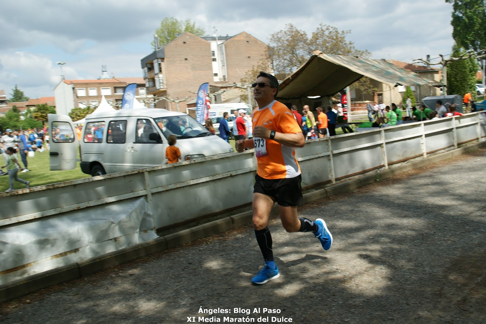 Otro puente de piedra, con pendiente hacia abajo, otro poco de cuesta abajo y ya estamos ahí, vuelta al campo de fútbol y la meta!!!!, ya está hecho..., mi segunda media a la buchaca!!!, con la bolsa con la camiseta nos dan un vale para una caña!!!, qué bien me ha sentado!, yo creo que ha sido de las mejores cañas que me he tomado, ya sólo por ello ha merecido la pena, que gustazo!!!